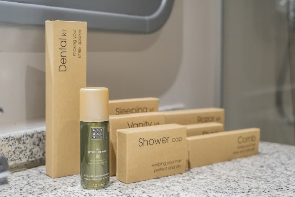 ● Using cleaning materials which are non-hazardous, non-eutrophic and biodegradable and are certified with an Eco label, if locally available;